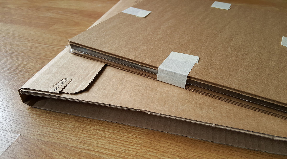 • We take a great amount of extra care in shipping our vinyl, more than many other labels or shops we've come across. Vinyl ships between two cardboard stiffeners, held in place by blue painters tape, biodegradable peanuts around the top, bottom, and sides add an additional layer of cushion. Then we pack the vinyl in a corner protected shipping box.